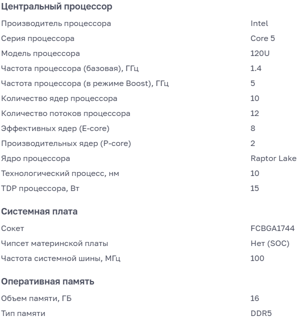 - Мощный процессор: Intel Core i5-120U с 10 ядрами и частотой до 5 ГГц обеспечит быструю и плавную работу даже с многозадачными задачами.
