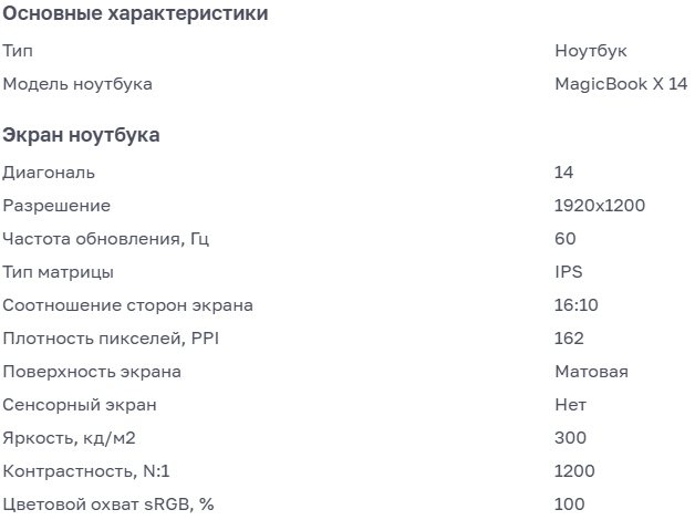 Ноутбук HONOR MagicBook X 14 (модель 5301ALWY)