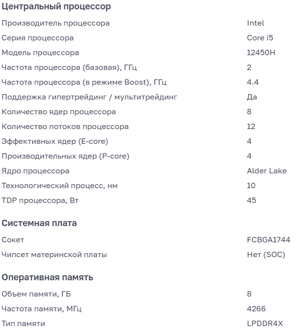 - Процессор: Intel Core i5-12450H.