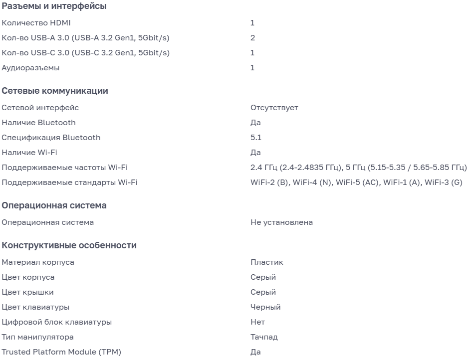 - Экран: диагональ — 14 дюймов, тип матрицы — IPS, разрешение — FHD+, частота обновления — 60 Гц.