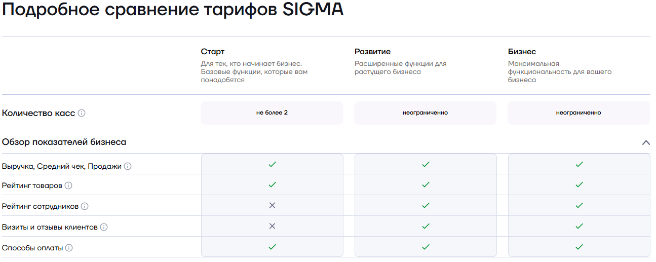 Тарифные планы АТОЛ SIGMA